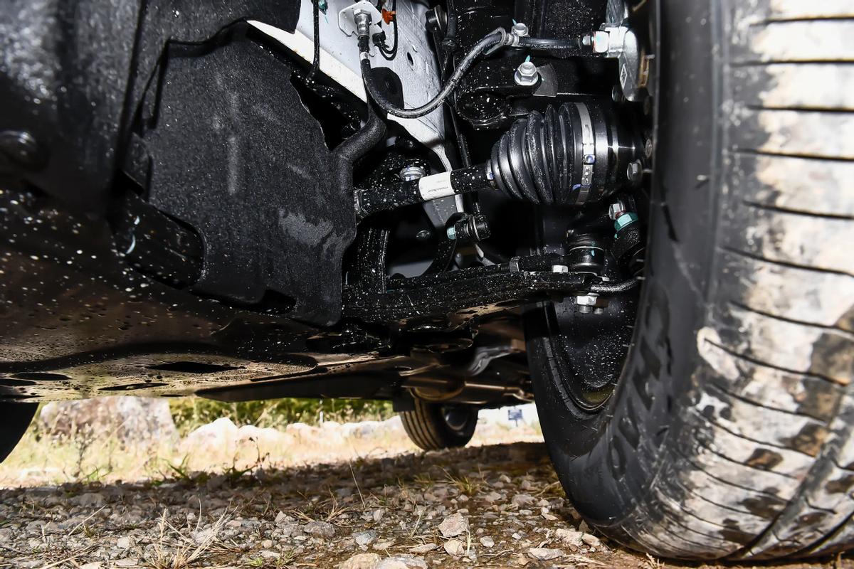 实际驾驶中,这套底盘的调校确实展现出一种兼顾的取向。在铺装良好的路面上行驶,悬挂能够过滤掉路面大部分细碎颠簸,车身姿态保持得比较稳定,车内乘客不会感到明显的漂浮感。而当驶离公路,面对连续的碎石或起伏路面时,悬挂的韧性便开始显现。它不会将所有的冲击生硬地传递给车身,而是通过富有韧性的压缩和回弹动作,将颠簸化解为一种相对柔和的车身起伏,底盘整体感不错,没有松散的感觉。这种调校让它在走烂路的时候,韧性十足,既保留了一定的路感,又保证了车厢内的乘坐舒适性,操控性和舒适性都表现出良好的水准。方向盘采用电动助力,手感在低速时轻盈,高速时则变得沉稳,易于掌控。