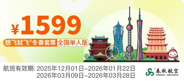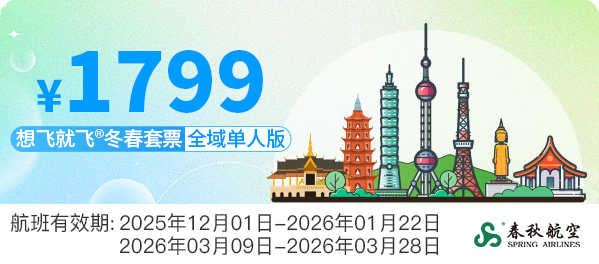 “想飞就飞冬春套票”延续国内版与全域版两种选择。国内版覆盖春秋航空9C执飞的国内(含港澳台)航线,全域版在此基础上增加国际航线,包机航线均不可用,航班有效期均为2025年12月1日至2026年3月28日。其中2026年1月23日—3月8日为不可用日期。