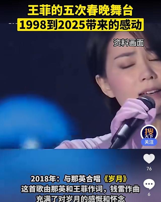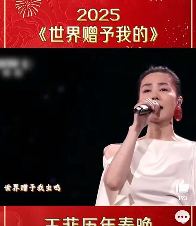 第五次上台,是在2025的春晚,王菲独唱 《世界赠予我的》,一开口就惊艳到所有人,那时候她虽然已经55岁了,但是嗓音没变,颜值不变,逝去的只是时间。她的温柔声线再次创下春晚的收视高峰!